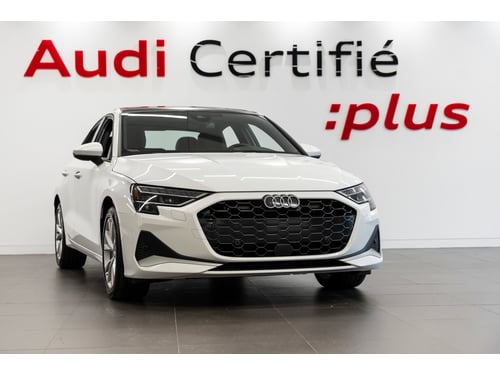 Audi de Québec est fier de vous présenter cette superbe Audi A3 40 TFSI Quattro 2025, affichant un très bas kilométrage. Dotée dun toit panoramique, de sièges en cuir chauffants et dApple CarPlay, cette berline compacte se distingue par son élégance, sa technologie moderne et sa tenue de route assurée grâce au système Quattro. Livraison partout au pays! Service en français ou en anglais. Contactez-nous par courriel ou via notre numéro sans frais. Pourquoi acheter chez nous? Inspection complète. Chaque véhicule Audi Certifié :plus est soumis à une vérification approfondie. Protection supérieure. Jusquà 5 ans ou 100 000 km de couverture à partir de la date de mise en service originale, en plus du reste de la garantie limitée 12 ans contre les perforations par corrosion. Avantages exclusifs. Privilège déchange 7 jours / 500 km Rapport CARFAX Canada inclus Assistance routière 24/7 avec prise en charge en cas dinterruption de voyage Pour tous les détails, parlez à lun de nos conseillers Audi Certifié :plus. Nationwide Delivery Available! Were pleased to serve you in French or English. Reach us by email or through our toll-free number. Why Buy From Us? Full inspection. Every Audi Certified :plus vehicle undergoes a complete and rigorous verification process. Superior coverage. Up to 5 years or 100,000 km from the original in-service date, plus the balance of the 12-year corrosion-perforation warranty. Additional benefits. 7-day / 500 km exchange privilege CARFAX Canada vehicle history report 24/7 roadside assistance with trip-interruption coverage For more information, speak with one of our Audi Certified :plus advisors.