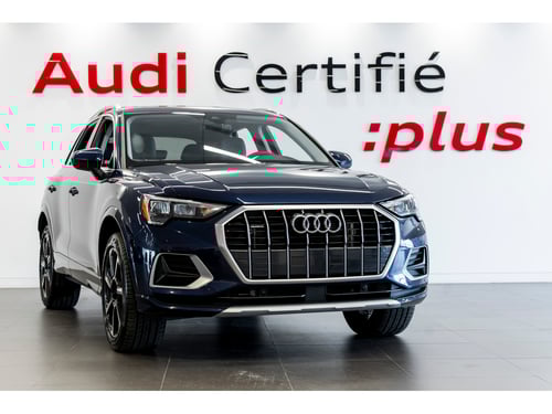 Audi de Québec est fier de vous présenter ce superbe Audi Q3 40 Progressiv Quattro 2023, appartenant à un seul propriétaire et nayant jamais été accidenté, doté dun toit panoramique, de sièges en cuir chauffants, dun hayon électrique et dApple CarPlay. Ce VUS compact allie élégance, confort et polyvalence, parfait pour les déplacements quotidiens. Livraison partout au pays! Service en français ou en anglais. Contactez-nous par courriel ou via notre numéro sans frais. Pourquoi acheter chez nous? Inspection complète. Chaque véhicule Audi Certifié :plus est soumis à une vérification approfondie. Protection supérieure. Jusquà 5 ans ou 100 000 km de couverture à partir de la date de mise en service originale, en plus du reste de la garantie limitée 12 ans contre les perforations par corrosion. Avantages exclusifs. Privilège déchange 7 jours / 500 km Rapport CARFAX Canada inclus Assistance routière 24/7 avec prise en charge en cas dinterruption de voyage Pour tous les détails, parlez à lun de nos conseillers Audi Certifié :plus. Nationwide Delivery Available! Were pleased to serve you in French or English. Reach us by email or through our toll-free number. Why Buy From Us? Full inspection. Every Audi Certified :plus vehicle undergoes a complete and rigorous verification process. Superior coverage. Up to 5 years or 100,000 km from the original in-service date, plus the balance of the 12-year corrosion-perforation warranty. Additional benefits. 7-day / 500 km exchange privilege CARFAX Canada vehicle history report 24/7 roadside assistance with trip-interruption coverage For more information, speak with one of our Audi Certified :plus advisors.