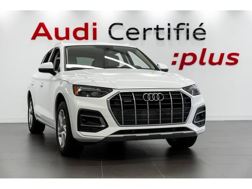 Audi de Québec est fier de vous présenter ce superbe Audi Q5 Komfort 45 2023, appartenant à un seul propriétaire et nayant jamais été accidenté. Doté de sièges en cuir chauffants, dun volant chauffant et du CarPlay sans fil, ce VUS polyvalent offre confort, technologie et raffinement pour une conduite agréable en toute saison. Livraison partout au pays! Service en français ou en anglais. Contactez-nous par courriel ou via notre numéro sans frais. Pourquoi acheter chez nous? Inspection complète. Chaque véhicule Audi Certifié :plus est soumis à une vérification approfondie. Protection supérieure. Jusquà 5 ans ou 100 000 km de couverture à partir de la date de mise en service originale, en plus du reste de la garantie limitée 12 ans contre les perforations par corrosion. Avantages exclusifs. Privilège déchange 7 jours / 500 km Rapport CARFAX Canada inclus Assistance routière 24/7 avec prise en charge en cas dinterruption de voyage Pour tous les détails, parlez à lun de nos conseillers Audi Certifié :plus. Nationwide Delivery Available! Were pleased to serve you in French or English. Reach us by email or through our toll-free number. Why Buy From Us? Full inspection. Every Audi Certified :plus vehicle undergoes a complete and rigorous verification process. Superior coverage. Up to 5 years or 100,000 km from the original in-service date, plus the balance of the 12-year corrosion-perforation warranty. Additional benefits. 7-day / 500 km exchange privilege CARFAX Canada vehicle history report 24/7 roadside assistance with trip-interruption coverage For more information, speak with one of our Audi Certified :plus advisors.