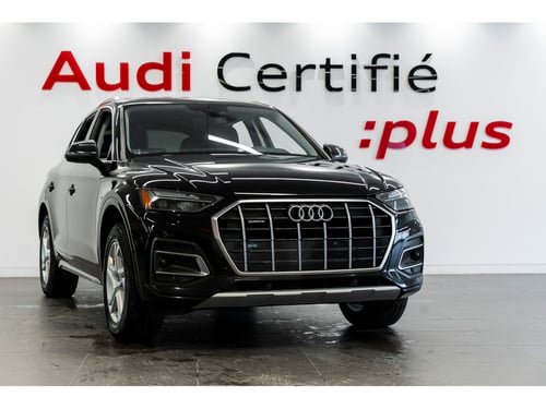 Audi de Québec est fier de vous présenter ce superbe Audi Q5 45 Komfort 2023, appartenant à un seul propriétaire et nayant jamais été accidenté. Doté de sièges en cuir chauffants, dun volant chauffant et du CarPlay sans fil, ce VUS polyvalent offre un confort moderne et une conduite raffinée en toute saison. Livraison partout au pays! Service en français ou en anglais. Contactez-nous par courriel ou via notre numéro sans frais. Pourquoi acheter chez nous? Inspection complète. Chaque véhicule Audi Certifié :plus est soumis à une vérification approfondie. Protection supérieure. Jusquà 5 ans ou 100 000 km de couverture à partir de la date de mise en service originale, en plus du reste de la garantie limitée 12 ans contre les perforations par corrosion. Avantages exclusifs. Privilège déchange 7 jours / 500 km Rapport CARFAX Canada inclus Assistance routière 24/7 avec prise en charge en cas dinterruption de voyage Pour tous les détails, parlez à lun de nos conseillers Audi Certifié :plus. Nationwide Delivery Available! Were pleased to serve you in French or English. Reach us by email or through our toll-free number. Why Buy From Us? Full inspection. Every Audi Certified :plus vehicle undergoes a complete and rigorous verification process. Superior coverage. Up to 5 years or 100,000 km from the original in-service date, plus the balance of the 12-year corrosion-perforation warranty. Additional benefits. 7-day / 500 km exchange privilege CARFAX Canada vehicle history report 24/7 roadside assistance with trip-interruption coverage For more information, speak with one of our Audi Certified :plus advisors.