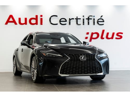 Audi de Québec est fier de vous présenter cette superbe Lexus IS 300 2023, appartenant à un seul propriétaire et nayant jamais été accidentée. Équipée dune caméra 360, dun toit ouvrant, de sièges en cuir rouge chauffants et refroidissants ainsi que dun volant chauffant, cette berline sportive se distingue par son style audacieux, son confort haut de gamme et son raffinement au quotidien. Livraison partout au pays! Service en français ou en anglais. Contactez-nous par courriel ou via notre numéro sans frais. Pourquoi acheter chez nous? Inspection complète. Chaque véhicule Audi Certifié :plus est soumis à une vérification approfondie. Protection supérieure. Jusquà 5 ans ou 100 000 km de couverture à partir de la date de mise en service originale, en plus du reste de la garantie limitée 12 ans contre les perforations par corrosion. Avantages exclusifs. Privilège déchange 7 jours / 500 km Rapport CARFAX Canada inclus Assistance routière 24/7 avec prise en charge en cas dinterruption de voyage Pour tous les détails, parlez à lun de nos conseillers Audi Certifié :plus. Nationwide Delivery Available! Were pleased to serve you in French or English. Reach us by email or through our toll-free number. Why Buy From Us? Full inspection. Every Audi Certified :plus vehicle undergoes a complete and rigorous verification process. Superior coverage. Up to 5 years or 100,000 km from the original in-service date, plus the balance of the 12-year corrosion-perforation warranty. Additional benefits. 7-day / 500 km exchange privilege CARFAX Canada vehicle history report 24/7 roadside assistance with trip-interruption coverage For more information, speak with one of our Audi Certified :plus advisors.
